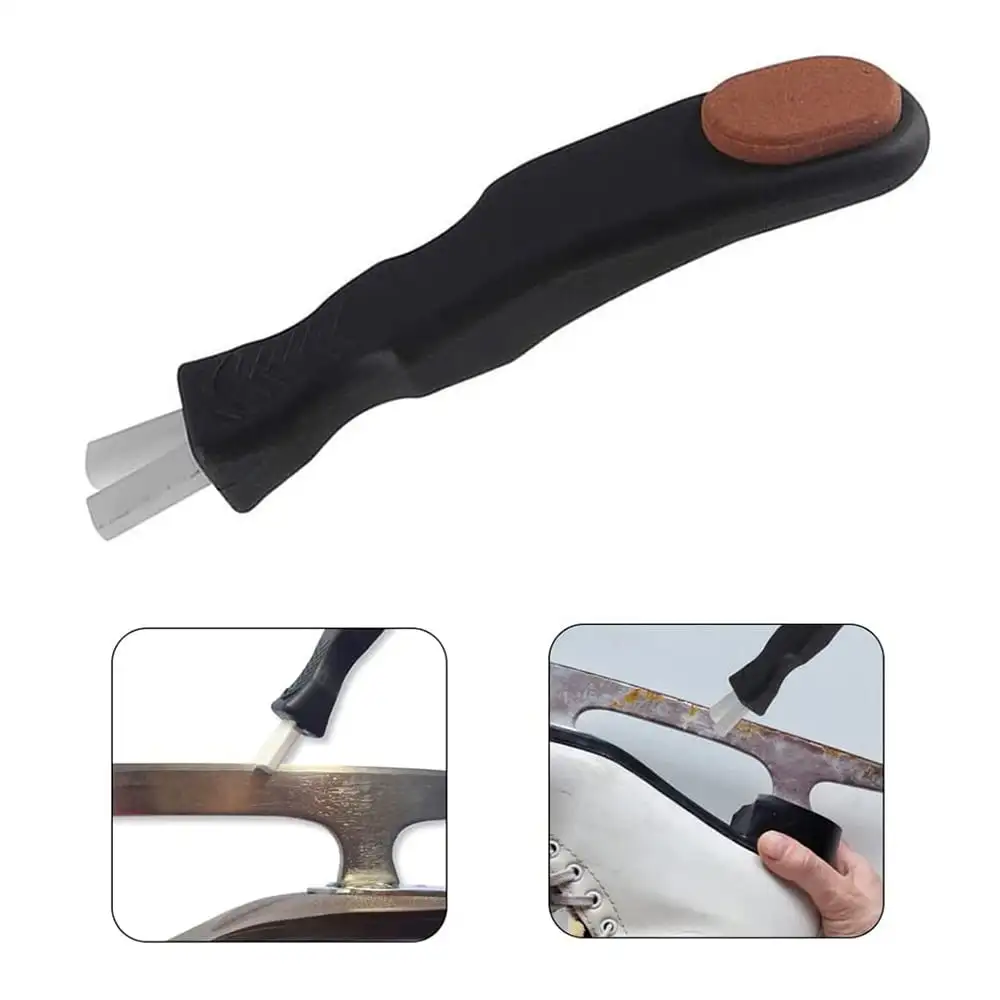 Skøjtesliber – en enkelt slibeværktøj for at holde dine skøjter hvæssede i topstil. Håndtaget er udformet i skridfrit materiale for bedst mulige greb. Alt som kræves er nogle få slibestrøg på skøjtebladene, og du får garanteret bedre glid på isbanen.